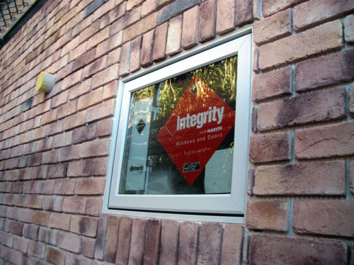 レンガタイルの外壁工事は着々と進み、窓まわりにも貼られた。