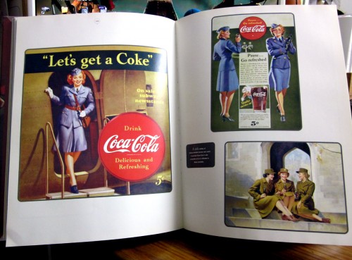 1940年代の第二次大戦下のCoca-Cola Girlも軍服で、兵士に”Let’s get a Coke” と促進する。