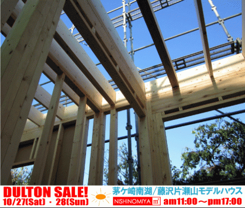 二世代に渡る住宅を建築中の井田さん。骨格をなすフレーミング工事がとっととっとと進んでいる。そのさなか、大型台風が接近中。今朝から強風が時折吹く。